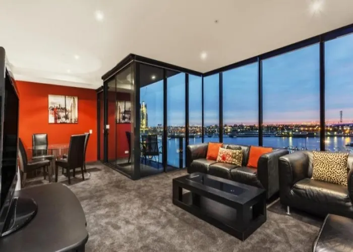Offering a sundeck and a golf course, 1-room Lovely Waterfront Apartment With Swimming Pool And Gym In The Heart Of Docklands is ideally located around 25 minutes' walk from Crown Melbourne. Guests can take advantage of a swimming pool or a fitness studio while staying in the vicinity of The District Docklands.